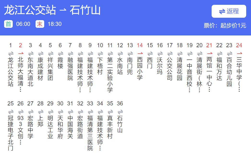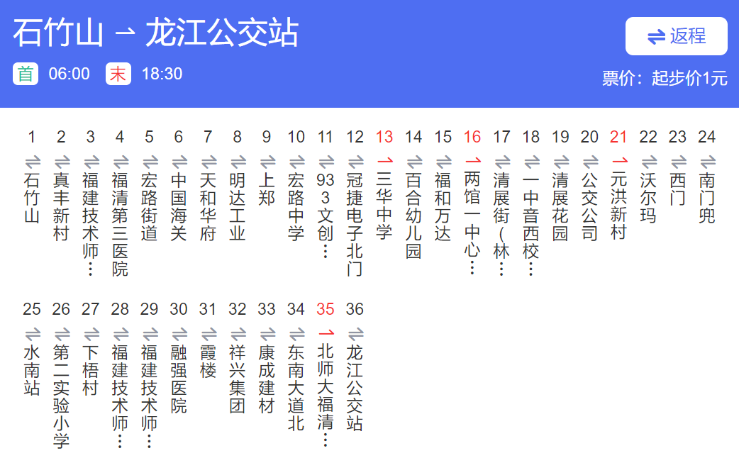 福清801路公交车行车路线图 交通 22年9月7日 编辑 福清哥 取消关注 关注 私信 福清801路公交车行车路线图 运行时间:福清汽车站06:00-18:30|真丰村06:00-18:30 参考票价:票价1元 龙江公交站-石竹山 石竹山-龙江公交站