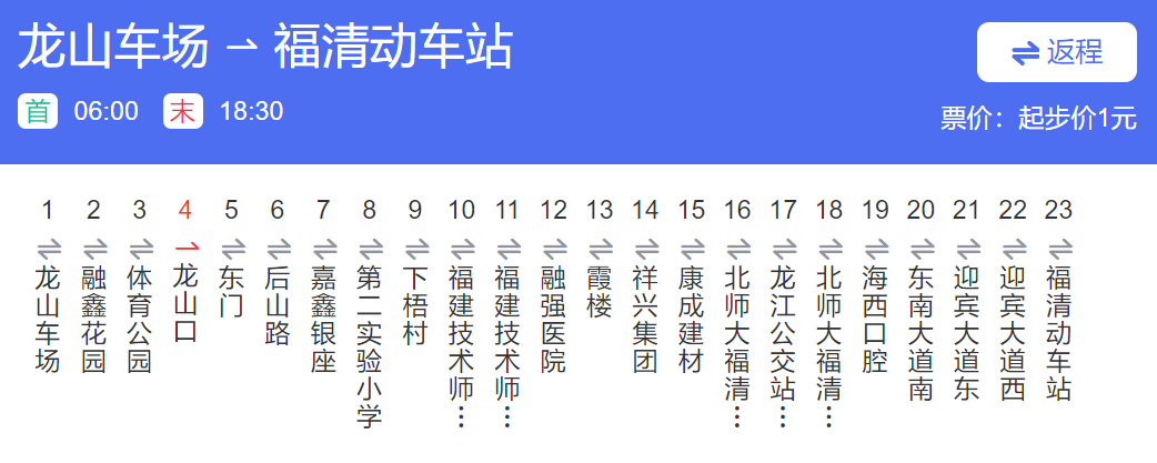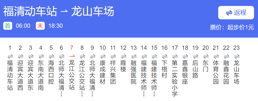 福清808路公交车行车路线图 交通 22年9月13日 编辑 福清哥 取消关注 关注 私信 福清808路公交车行车路线图 运行时间:龙山车场06:00-18:30|福清动车站06:00-18:30 龙山车场—福清火车站 福清火车站—龙山车场