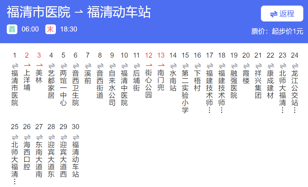 福清810路公交车行车路线图 交通 22年9月14日 编辑 福清哥 取消关注 关注 私信 福清810路公交车行车路线图 运行时间:福清市医院06:00-18:30|福清动车站06:00-18:30 福清市医院—福清火车站 福清火车站—福清市医院