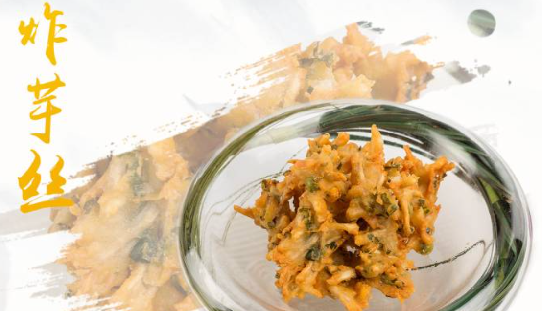 芋头和面粉调配炸制,将芋头切成细丝,拌入调好的面糊入锅油炸,口感酥脆,齿颊生香。