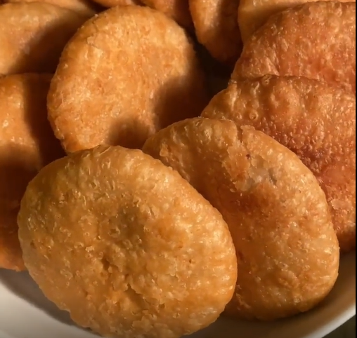 最后下锅炸前要筷子或牙签在中间刺小孔(防止炸时膨胀爆裂)