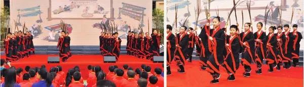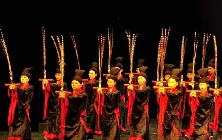 据记载,佾分祭天子、公侯、大夫、士,又有八佾、六佾、四佾、二佾之分。与宫庭乐舞相同,释奠佾舞也有文舞和武舞。跳文舞时右手执羽,常用雉尾,左手执籥,即短笛形的竹管,分别有立容、立声之意。每个动作皆代表一个字,一节乐曲一组动作。武舞又称干舞。