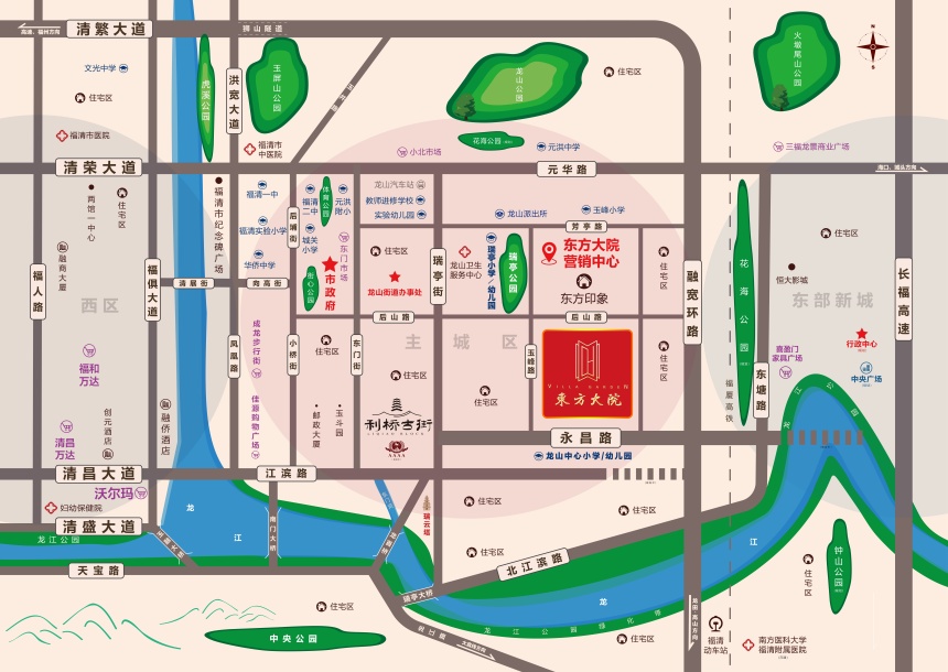 | 开 发 商 | 福清东方天成置业有限公司 | 售楼处 | 龙江派出所对面(瑞亭小学旁&瑞亭公园旁) |