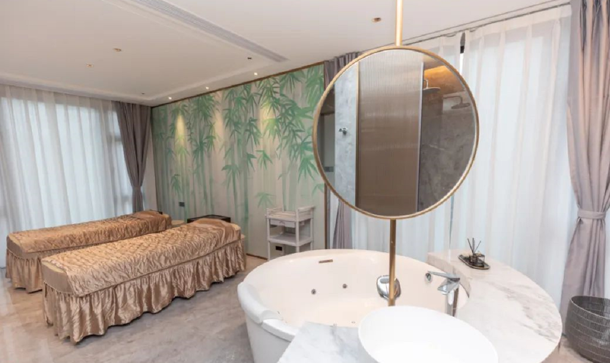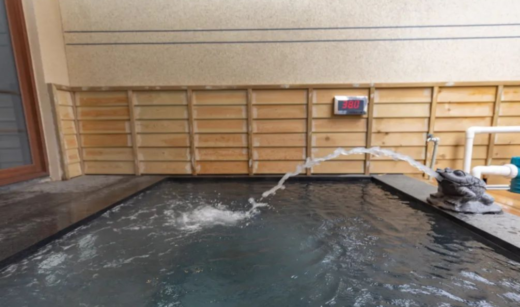 由于东龙湾特殊的地质结构,在静水压力差的作用下,海水温泉水从地下300米的岩层裂隙中自然上涌,出井的温度近60摄氏度,经过杂质过滤、自然冷却等环节,送至各个温泉池时的温度保持在40摄氏度左右。