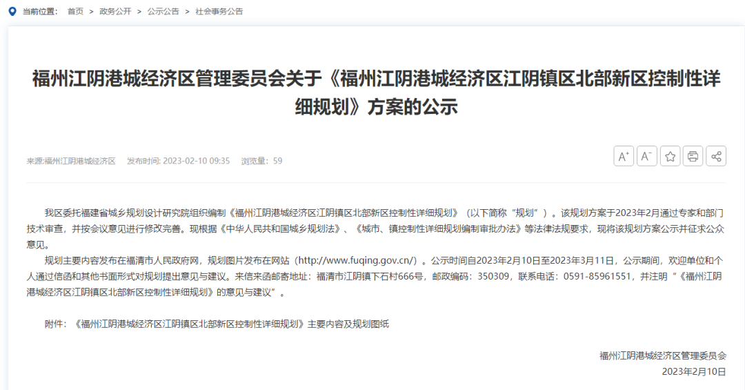 近日,福清市智慧城市规划网公示了《福州江阴港城经济区江阴镇区北部新区控制性详细规划》主要内容及规划图纸。