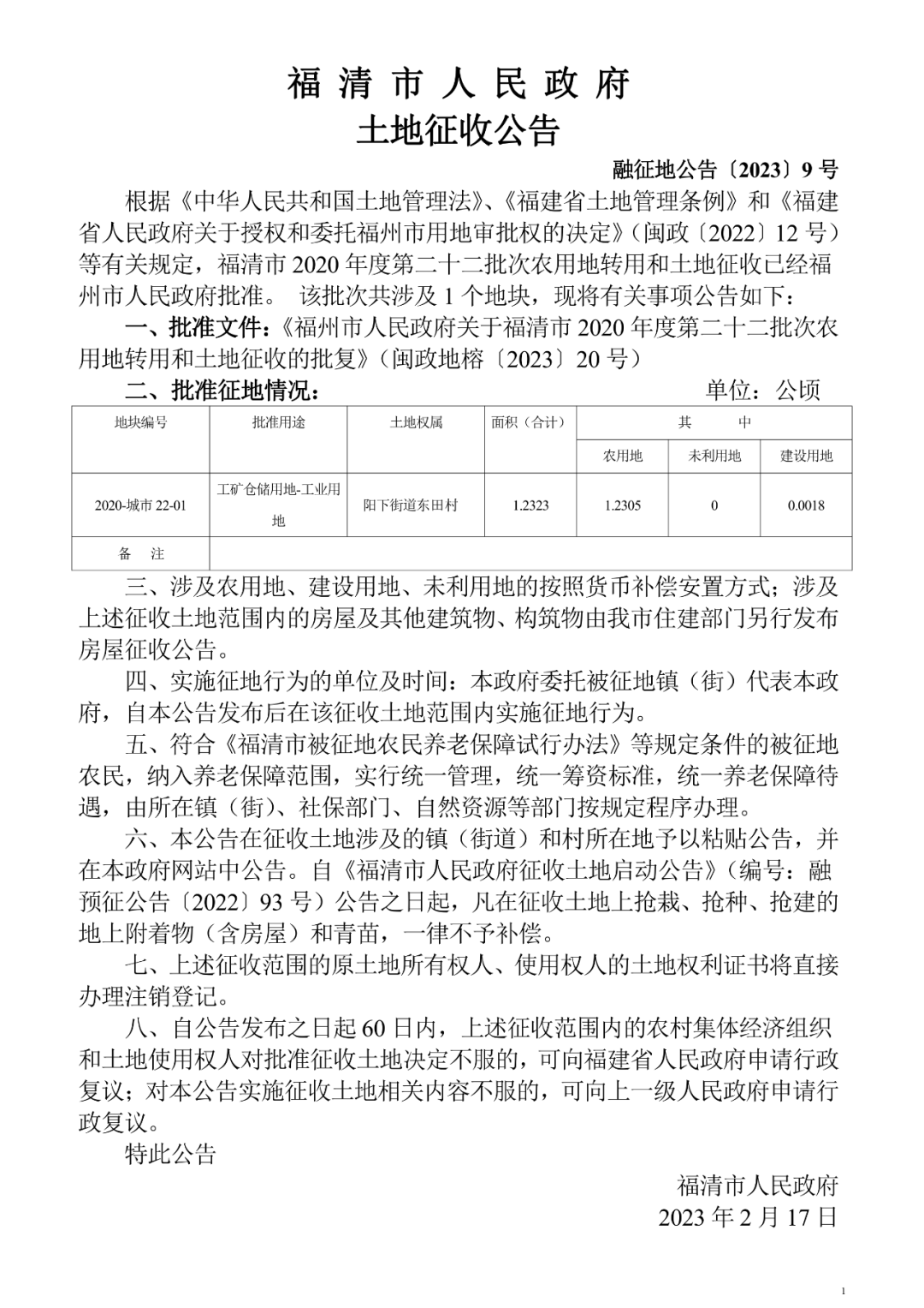 福清市阳下街道东田村土地征收公告 规划 23年2月24日 编辑 福清哥 取消关注 关注 私信 工业储备地2022-026号(预申请单位:福清市永裕来齿轮有限公司) 阳下街道东田村 来源:福清市人民政府网、福州市自然资源和规划局网站