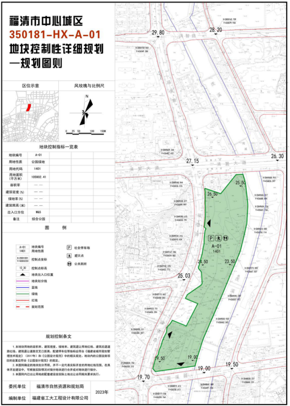 地块用地性质分类和代码均采用《国土空间调查、规划、用途管制用地用海分类指南(试行)》,本规划地块350181-HX-A-01用地性质均1401(公园绿地)。