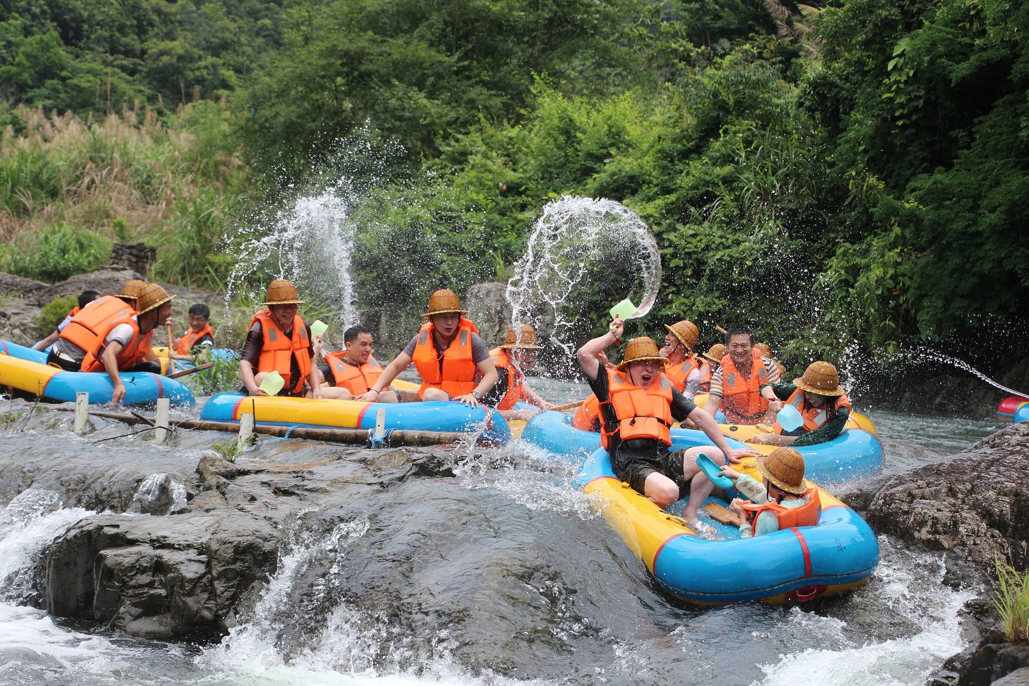 漂流全长6公里,漂道由天然河道改建而成的,漂流途经50多个大小弯道,其间历经14道重岩迭嶂,有龙潭、和尚潭、水茫潭、龟岩潭、姜母潭、观音潭、情侣亭等众多景点。漂流全程约2.5个小时,险滩(激流)19处,缓流区8处,随艇而下,时而感觉静若处子,感受与小鱼共游的乐趣,时而巨浪咆哮,既可充分体验到向极限挑战的刺激与豪迈,又可享受到放松自我,与自然相拥的宁静与快意。